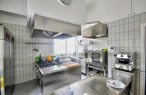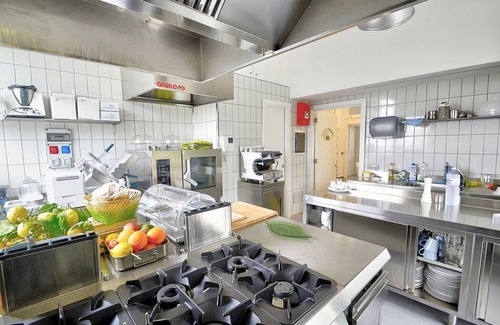 You will be able to enter the kitchen from the living room. It is professional-grade, equipped with a six-burner gas cooker, an electric oven, a counter refrigerator, a dishwasher, a microwave oven, an Italian-style coffee-maker, an American-style coffee-maker, a toaster and other small appliances. The dining table can accommodate two guests. From the kitchen a French door will take you to the garden. The room also has a window.