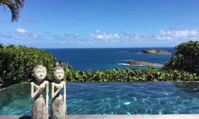 Villa Tiwa is a wonderful two bedroom, two bathroom villa with an infinite pool. It is highly favored and private villa located in sought after Pointe Milou. The cozy and elegant villa offers exceptional charm that is highly popular amoung American travelers.