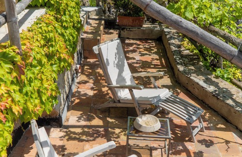 This recently renovated villa is elegantly furnished with antiques and modern design classics accentuating the beauty of this unique building. Plate- glass windows and series of panoramic terraces offer spectacular views across the sea and of the unspoiled Amalfi coast. These terraces provide a perfect setting for relaxing and eating outside. The property also boasts an exclusive double- level swimming pool, ingeniously linked by communicating steps. A winding path leads down below the tower to a private cove for swimming in the sea. This enchanting rental villa comprises four in dependent annexes discreetly positioned throughout the grounds. The estate provides small electric cars for easier access to the property situated at the end of a winding tarmac road.