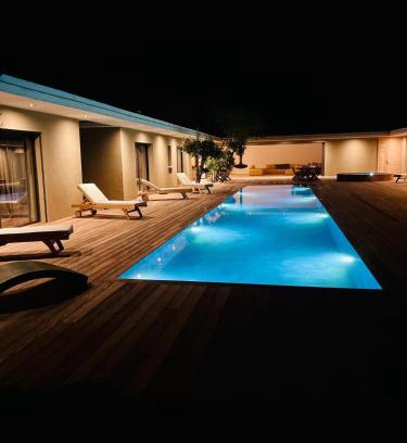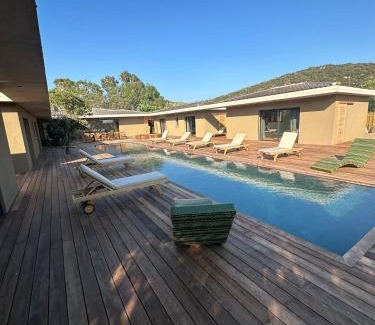1.5 miles from Chevano Beach in Pianottoli-Caldarello, Villa Toussaint provides accommodations with access to a hot tub. This property offers a private pool, free Wifi, and free private parking. Bonifacio Port is 13 miles from the villa and Porto Vecchio Port is 19 miles away. Offering direct access to a terrace with pool views, the spacious villa consists of 2 bedrooms. The air-conditioned villa also features a flat-screen TV, a fully equipped kitchen with a stovetop, a seating area, washing machine, and 7 bathrooms with a hot tub and a shower. For added privacy, the accommodation features a private entrance. Guests can also relax in the garden. Former Chapel of the Trinity is 10 miles from the villa, while The Lion of Roccapina is 12 miles from the property. Figari-Sud Corse Airport is 3.7 miles away.