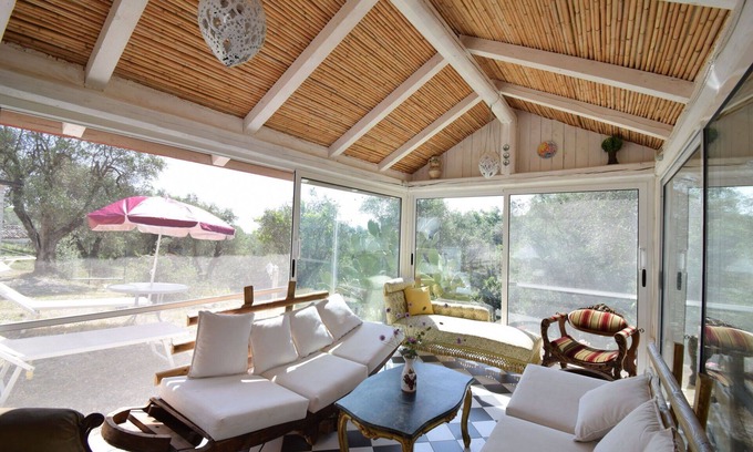 Villa Tre Archi, recently renovated, is an independent villa surrounded by a large, completely fenced garden. The well-kept interiors are distributed over two floors: on the ground floor a living room/kitchen with table, chairs and sofa, a double bedroom and a bathroom. An internal staircase leads to the upper mezzanine floor equipped with a double bed. What makes the villa unique is certainly the veranda closed with glass and furnished with sofas, located in front of the entrance to the villa, a living area that will allow you to spend pleasant moments of relaxation reading a book or sipping a good glass of wine. The barbecue with wood-burning oven, located in the garden, will be ideal for trying your hand at preparing lunches to be eaten in the open air, all for a unique and unforgettable stay.