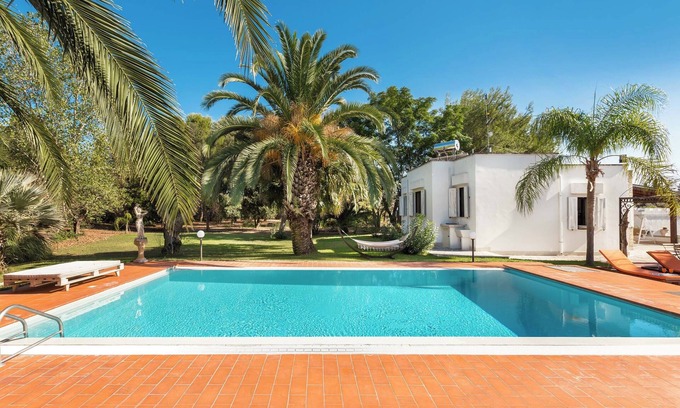 VILLA TWO SORDS, with swimming pool, olive grove, orchard, tropical garden! has 5 Bedrooms , 3 Bathrooms, and max occupancy of 11 people. The minimum rental for this property is 1 nights, but this can change depending on the season you plan on staying. Previous guests have given good rated it, and VRBO labeled it a top-rated Villa because of the excellent services rendered by the owner or manager of this Villa, and has consistently provided great experiences for their guests. Most families or guests that use it recommend it to their friends and some of them are repeat guests. Villa has a friendly neighborhood, and the Ugento has interesting places to visit. If you want to learn more about the Villa in Ugento, such as places to visit and things to do nearby, you can check below to learn more.