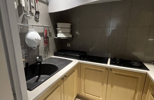 A large, fully equipped kitchen opening onto the living room and a large terrace with a plancha on the ground floor.