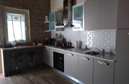 The "L'Ulivo" house has a newly equipped kitchen, an extendable table where 10 can eat comfortably, a comfortable living room with sofa bed, 32" flat screen TV and a cozy pellet stove, a triple bedroom with private bathroom and a double bedroom with shared bathroom. Both bedrooms are equipped with air conditioning, ceiling fan and 24" LED TV.