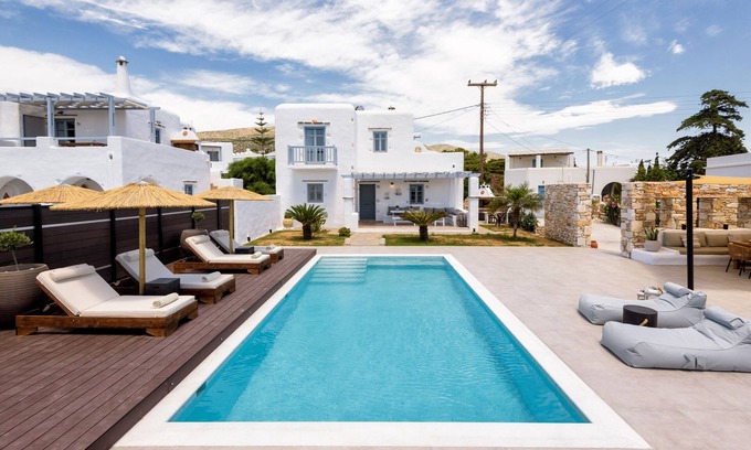 Best-rates for the Drios villa starts from $520 per night with includes Guest Services, Child Friendly, Kitchen, Air Conditioner, Parking, Private Pool, Sports/Activities, Breakfast, Balcony/Terrace, Wellness Facilities, Pool, TV, Security/Safety, Bedding/Linens, Barbecue/Outdoor Cooking, Internet, Laundry with all other amenities. Perfect for Weddings is committed to ensuring every guest experiences a comfortable and extraordinary stay, whether planning a romantic getaway, a honeymoon, a pet-friendly stay, or celebrating with the entire wedding party.