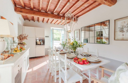 Villa Veranda is a dethatched Farmhouse which is part of the Borghetto Andrea Tafi private country estate that consists in various hectares of immaculate countryside, olive groves, secret gardens and a shared pool between 4 other units.Villa Veranda has been crafted and lovingly restored from an old farmhouse and it is provided with a nice pool and garden with views of the immaculate Tuscan landscape. The Villa is private but it is in a Borgo so there are some shared area among which the pool and the laundry area.Situated amongst the rolling hills of Lamporecchio, easy access to Lucca, Pisa, Florence and Pistoia and surrounded by olive groves and pristine views, this secluded five-bedroom offers the perfect escape for a romantic honeymoon, family vacation, or couples retreat.Composition:the rental is composed of a semi-dethatched unit on two floor with a private patio in a big farmhouse and an hayloft (the veranda) on one floor as follows:Ground Floor: kitchen, dining room, twin bedroom with ensuite bathroom.First Floor: 1 master suite with fireplace and bathroom, 2 master bedrooms with 1 bath-room.Hayloft: a grand living room, 1 master bedroom, 1 bathroom.Laundry open 24 hours with shared washing machine for fee of 25 euros per 6 tokens (you can make a washer with 1 token). A drying rack available in the house.Pool closes every day at 7pm.Included in the rental price:Final CleaningTowels and linensElectricityGasWaterInternet WifiHigh chair (upon request at booking)Babycot (upon request at booking)Not included in the rental price:Tourist tax: mandatory and required by the local municipality, where applicable.Midstay and/or weekly cleaning and change of towels and linensBaby cot's linens