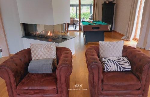 Villa VIP offers accommodations in Welkenraedt, 11 miles from Vaalsbroek Castle and 14 miles from Aachen Central Station. This property offers access to a balcony, a pool table, free private parking, and free Wifi. Guests can use the spa and wellness center with a hot tub and indoor pool, as well as a garden. Offering a terrace and pool views, the spacious villa includes 4 bedrooms, a living room, flat-screen TV, an equipped kitchen, and 2 bathrooms with a hot tub and a bath. Towels and bed linen are featured in the villa. For added privacy, the accommodation features a private entrance. A continental breakfast is available at the villa. Guests can make the most of the warm weather with the property's barbecue facilities. You can play darts at Villa VIP. Theatre Aachen is 15 miles from the accommodation, while Aachen Cathedral is 15 miles away. Liege Airport is 26 miles from the property.