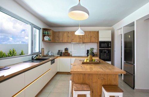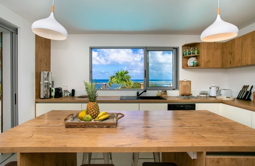 The villa is located in the quiet and secure residence of Park View in Cul de Sac, a popular and charming area on the French side of Saint Martin. Overlooking Orient Bay Beach, the islands of Caye Verte, Tintamarre and St. Barth in the distance. A breathtaking view. The famous Pînel islet is 2 minutes by car. Grand Case and its restaurants is 5 minutes' drive away, as is the popular Orient Bay Beach.