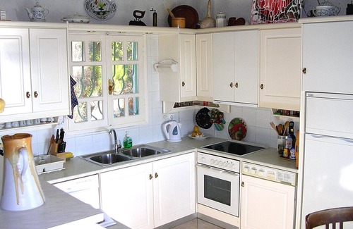 A comfortable, large kitchen area is equipped with a dishwasher, stove, freezer/deep-freeze, washing machine, coffee machine, microwave, blender, iron, and many other extras to make life easy.