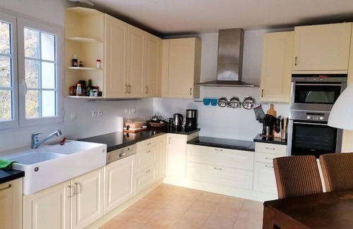 Treat yourself to a relaxing stay in this spacious 8-person villa nestled in the serene countryside of Vasles. With a generous layout, bright living/dining room, and cozy seating area with flat-screen TV (NL/BE/FR/EN channels), this home offers comfort at every turn. The kitchen is fully equipped with an oven, microwave, dishwasher, and coffee machine—perfect for homemade meals or lazy morning brews. Bedrooms feature comfy box-spring beds (including a fun bunk bed for kids), and the two sleek bathrooms plus extra toilet ensure a smooth and private stay for all. Step through the garden doors and into your own private oasis—complete with a spacious terrace, lush garden, and a refreshing swimming pool (open May–Sept). The outdoor space is perfect for lounging, al fresco dining, or games with the kids. Located near the quaint village of Vasles, you're just minutes from local restaurants like Le Bistroquet, charming cafés, and weekend markets bursting with regional flavors and wine. Your furry friends are welcome here! The secure garden is a great play space for pets, and the nearby Lac du Cébron and forested walking trails offer scenic, leash-friendly adventures. Enjoy lunch at pet-welcoming terraces or let your dog splash along the riverbanks—because great holidays are meant for the whole family, paws included.