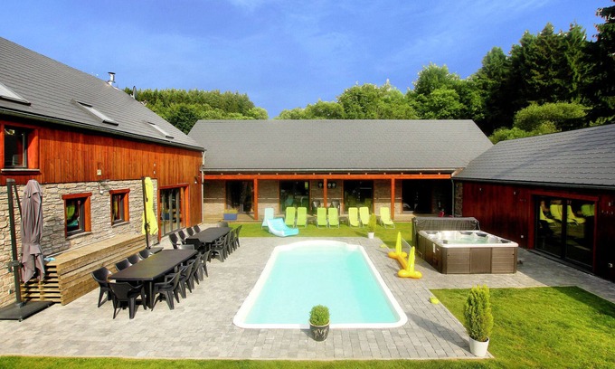 Villa with heated outdoor pool and sauna is located in Freineux. Villa with heated outdoor pool and sauna provides accommodation, featuring Barbecue/Outdoor Cooking, TV, Spa, among other amenities. This Villa features Barbecue/Outdoor Cooking, TV, Spa, to make your stay a comfortable one.