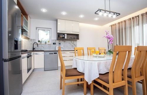 Outdoor area is a real gem, we have nice heated pool, big dining area with summer kitchen and traditional barbecue. There is also a big fenced playground for the kids and football/ tennis/volleyball court to have some fun with your kids or friends.