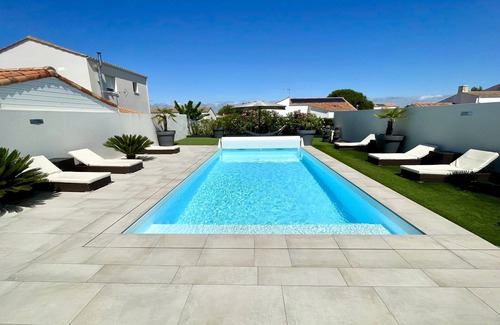This 2020 Villa with heated swimming pool, ideally located in the "real city center" (not the Terrière or the Grière which are districts of La Tranche, very far from the center), access to the central beach on foot.