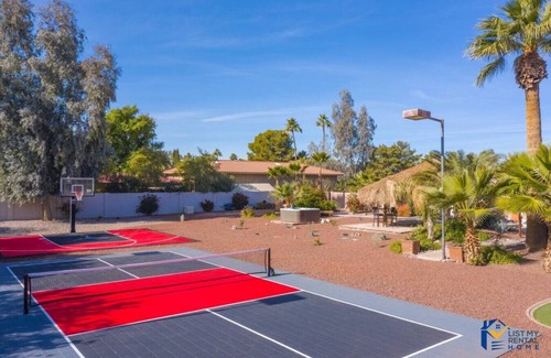 The Villa with It ALL! SportsCourt+Putting Green+Heated Pool+Spa+Chef+Tiki Hut is your ideal destination for an unforgettable wedding celebration. Nestled in the heart of Scottsdale, Arizona, this luxurious property boasts expansive indoor and outdoor spaces that create a picturesque backdrop for exchanging vows. With its elegant design, exceptional amenities, and tranquil atmosphere, you are sure to make lasting memories with friends and family on your special day.