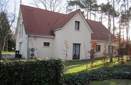 Recent villa on the edge of the forest of Le Touquet Paris Plage on 1000m2 including: entrance, toilet, living room of 60 m2 with equipped kitchen and round table 180 cm for 12 people, plus other tables, bar; 2 leather sofas in the living room and television 158 cm; internet wi-fi, large fridge bosch 86 cm with freezer, 2 bedrooms on the ground floor, one with adjoining shower room, large landing on the first floor and 4 large bedrooms from 20 to 27 m2 useful as well as 2 bathrooms with toilet. The house is fully tiled (porcelain stoneware), garage, terrace with 2 folding garden tables. A large charcoal weber barbecue. Forest access at 300 meters behind the house.