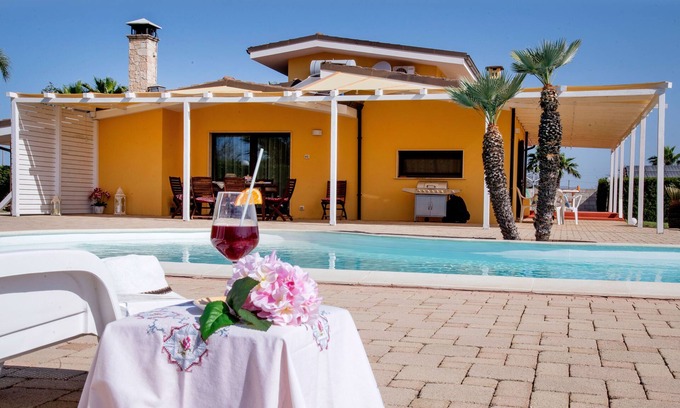Villa with large swimming pool Salento is located in Melissano. Villa with large swimming pool Salento provides accommodation, featuring TV, Pet Friendly, Balcony/Terrace, among other amenities. This Villa features TV, Pet Friendly, Balcony/Terrace, to make your stay a comfortable one.