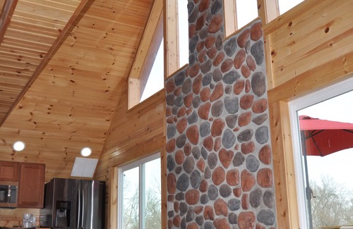 There are 3 units available in the River House but this one is the largest, located on the second and third floors, with open space for enjoyable social gatherings and views of the river. Hickory hardwood floors shine throughout with custom pine doors and cedar closets. A full deck offers additional space for relaxing and entertaining on the river. This new construction includes a full modern kitchen with island seating for 6, 2 full baths, washer/dryer and sleeps 5 comfortably. The living area faces the river and includes a convertible sofa that sleeps 2 with an additional reading/relaxing area. The large bedroom on the main floor has a queen size bed with attached full bath and tub/shower (bathroom has shared access with the living area.) The quaint upstairs bedroom has a bunk bed that can sleep 3 (full and twin) with a full bath and shower.
