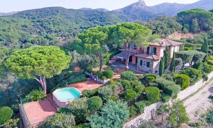 The detached villa was renovated in 2002 and is furnished in a luxury style. Also due to the view over the sea from the property and its quiet and sunny hillside location the domicile is popular. Available for use: barbecue facilities and terrace.LocationPortoferraio, district Magazzini. The villa is located on a garden plot. The landlord does not live in the house or on the property. Parking is available in a carport and on the property. Specialcentral heating.For your safety, the accommodation is equipped with CO2 detector and fire extinguisher. PoolAll pools are available for exclusive use. Outdoor pool (usable from early May to early October, 3 m x 6 m, depth 1 m). Dogsallowed, EUR 50.00/pet per stay. DistancesShopping 1000 m (4 km in winter), restaurant 800 m, town center 8 km. airport in Campo Elba 14 km. cinema in portoferario 8 km. Portoferraio: thermal bath 2 km and doctor, bank each 8 km. pharmacy in Schiopparello 2 km. In summer: Magazzini 800 m in Magazzini (beach 1000 m in Magazzini featuring gravel). golf in Acaquabona 3 km. water sports, boat rental each 3 km in Bagnaia. dog beach in la prade 1000 m. diving, boat launch each 1000 m in Magazzini. tennis in Portoferraio 7 km. DivisionVilla, 2 floors, 6 rooms (including 5 bedrooms), 140 sqm, in total 10 beds. RoomGround floor: Living room with TV, fireplace, dining area and access to the terrace (garden furniture, 2 tables, 10 chairs, 8 sunbeds). Bedroom with 2 single beds. Bedroom with 1 double bed. Kitchen with gas stove (5 flames), oven, dishwasher, fridge (icebox), toaster, washing machine and access to the terrace. Bathroom with shower, 1 washbasin, WC and window. 1st floor: 2 bedrooms each with 1 double bed and access to the balcony. Bedroom with 1 double bed and fireplace. Bathroom with shower, 1 washbasin, WC and window. Bathroom with shower, 1 washbasin, WC, bidet and window. Terms of lease and pricesIncluded in the priceOutdoor pool, parking place, electricity, gas, water, bed linen. Side costs-Costs on the spot:/Obligatory:final cleaning 300 € per object per stay. local tax by local tariff (if charged).