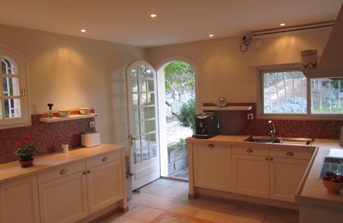Three-bedroomed air-conditioned family villa, superbly equipped, located on the southern edge of Cessenon-sur-Orb in the Languedoc. The villa is set on a hillside in 1 hectare of landscaped gardens with an unoverlooked private swimming pool. It has its own small vineyard. There are stunning views from both the patio area and the pool area. The villa is just 10 minutes walk from the centre of Cessenon, where there are restaurants, bars and shops. Cessenon is a lively town with a market 2 days a week. There are many lovely walks in the area including part of a GR route. Cycling routes are well-signed. Canoeing on the River Orb is available nearby. The historic town of Beziers is 30 minutes away by car. Other places of interest are the Canal du Midi, Carcassonne and Narbonne.