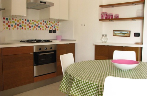 The apartment consists of two rooms with independent entrance from the large panoramic terrace. On the living room with kitchenette, separate laundry / storage area, ceiling fan, double sofa bed and full bathroom; the large French window overlooks the terrace equipped with table, chairs and umbrellas and armchairs for enjoying outdoor dining. A hallway divides the bedroom with double bed, wardrobe ceiling fan and also overlooks the terrace. A comfortable outdoor shower with hot and cold water allows you to enjoy pleasant moments of relaxation.