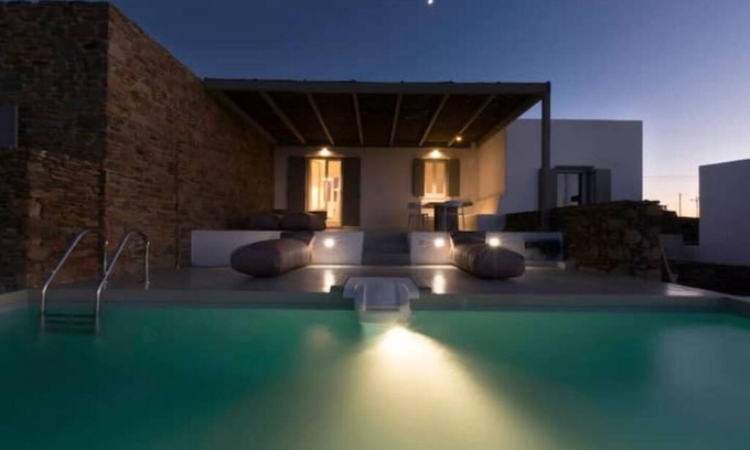 Best-rates for the Kithnos villa starts from $598 per night with includes Child Friendly, Parking, Pool, View, Internet, Pet Friendly, Security/Safety, Laundry, TV, Private Pool, Ocean View, Balcony/Terrace, Bedding/Linens, Wellness Facilities, Kitchen, Air Conditioner with all other amenities. Perfect for Weddings is committed to ensuring every guest experiences a comfortable and extraordinary stay, whether planning a romantic getaway, a honeymoon, a pet-friendly stay, or celebrating with the entire wedding party.
