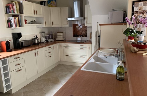 The wooded land of 2400m², fully fenced, includes various spaces. Around a large heated swimming pool (9.5 * 4.5), completely private, not overlooked, fenced with a child safety gate, the sun loungers and deckchairs can be placed either in full sun, in the shade of oak trees, or under a covered terrace . Young children and readers will appreciate the submerged bench seat on the poolside. The outdoor shower is very nice. While some are swimming, others can play table football or play pétanque on the adjoining boules pitch, including at the end of the day because the space is lit.
