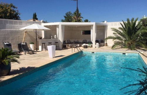 Large enclosed garden (1100 m2) not overlooked, swimming pool, superb pool house with summer bar, griddle and sofas, 4x10 pool, heated surcharge, 95 euros per week.