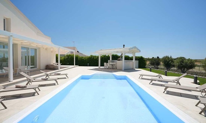 Immersed in the tranquility of the Modica countryside, the structure is entirely dedicated to guests. Large outdoor area with green areas, swimming pool area and barbecue with outdoor kitchen. Minimal but refined furnishings, it offers 4 bedrooms with their own private bathroom. Living area with sofas and dining area with a wide view of the swimming pool. It is a few kilometers from the commercial and historic center of Modica. Its position is also central to reach the sea of south eastern Sicily.