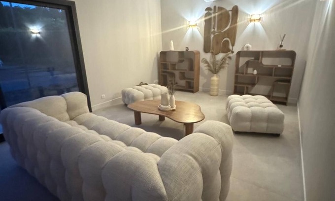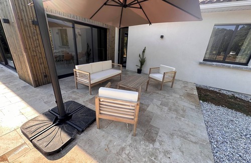 Villa with swimming pool on the Angoulême golf course is located in Angouleme. Villa with swimming pool on the Angoulême golf course provides accommodation, featuring Air Conditioner, TV, Bedding/Linens, among other amenities. This Villa features Air Conditioner, TV, Bedding/Linens, to make your stay a comfortable one.