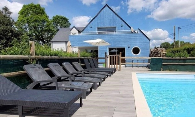 Best-rates for the Marcey-les-Greves villa starts from $745 per night with includes Fireplace/Heating, Parking, Designated Smoking Area, TV, Accessibility, Sports/Activities, Internet, Entertainment, Wellness Facilities, Spa, Pet Friendly, Pool, Balcony/Terrace, Private Pool, Barbecue/Outdoor Cooking, Child Friendly, Hot Tub, Kitchen, Laundry with all other amenities. Perfect for Weddings is committed to ensuring every guest experiences a comfortable and extraordinary stay, whether planning a romantic getaway, a honeymoon, a pet-friendly stay, or celebrating with the entire wedding party.