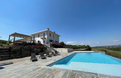 Villa with vineyards, infinity pool, views of an UNESCO castle and the alps. | Villa in Castagnole delle Lanze