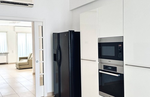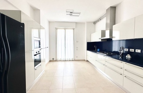 Adjacent to this large space, onto which two balconies open with sea views, is the kitchen, fully equipped and illuminated by the French window which leads to another balcony.