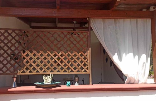 Villa indipendente al primo piano con piccolo giardino, due camere da letto, ideale per famiglia con bambini. La villa è immersa in una bellissima pineta. È dotata di un piccolo giardino con parcheggio privato e doccia calda. All'interno della villa ci sono 2 camere da letto di cui 1 matrimoniale ed una doppia con la possibilità di un terzo letto, 1 bagno completo, cucina abitabile ed un'ampia veranda coperta per rilassarsi e pranzare. La villa è dotata di climatizzatore, ventola a pala in ogni camera compresa nella veranda, TV, lavatrice, 1 forno e 1 fornetto, tostapane, macchina per il caffè espresso. Su richiesta sono forniti un lettino per bambini fino a tre anni ed un seggiolone. La biancheria come lenzuola, trapunta, asciugamani, teli doccia e tovaglie sono forniti gratuitamente come le stoviglie e gli utensili da cucina. Il prezzo della villa si intende per 4 persone. Per un ulteriore ospite è previsto il pagamento extra di 15 euro a notte.