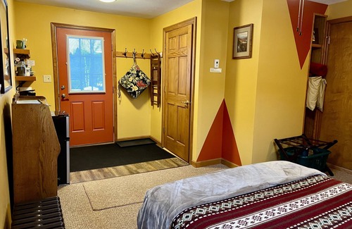 Retreat to this thoughtfully appointed Village Hideaway - a cozy private room with an ensuite bathroom for one or two guests, and a private entrance. Enjoy the convenience to easily stroll downtown Saranac Lake for dining and shopping via the Adirondack Rail Trail right behind the building. The rail trail is currently completed for 25 miles and is truly an amazing area amenity.