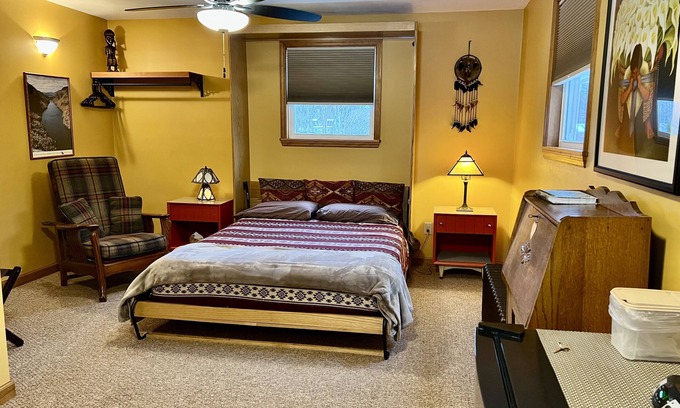 Mary and Kevin are available whenever needed via text or phone and are usually quick to reply. We are glad to meet our guests but its not required since we provide self-check-in. You'll find a guidebook in the room with the hosts recommendations for dining and outings as well as brochures and maps for area attractions, trails and waterways.