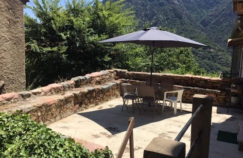Small village house located in the village of Ota, near Porto, Corsica. The latter has a car park that can accommodate a car, a terrace of 25m2, a kitchen, a living room with sofa bed, a closed bedroom with a double bed, a shower room with bath and separate toilet. A balcony connecting bedroom and living room offers a sumptuous view on the valley and the village. House completely quiet, a haven of peace.