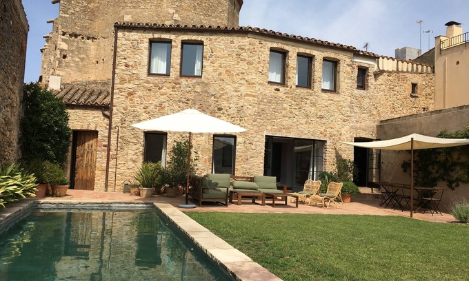 Stone house in small village, 250 m2. Garden and Pool 174 m2. Quiet village 4 km from Pals and Bagur.