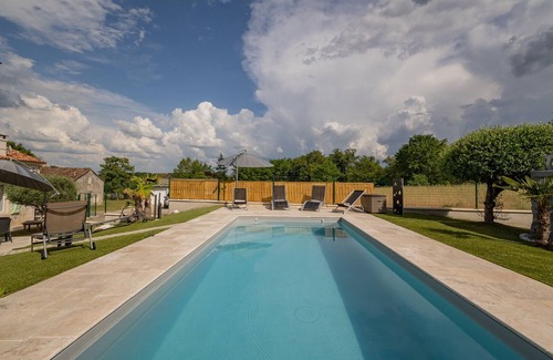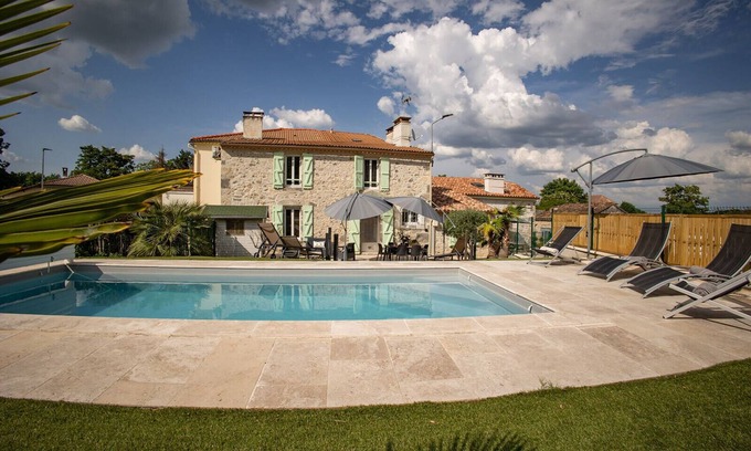 A charming village house, just 1h10 from Bordeaux. It offers a corner of peace and quiet for anyone wishing to enjoy the peace & quiet of the countryside and the comfort of a fully-equipped house, designed for families with teenagers or groups of friends, and ideally located just 25 min. from Center Parcs and Walligator. Heated outdoor swimming pool, jacuzzi, table football, arcade games, pinball machine, gym... Courtyard with dining area, 3 bedrooms and a 7-pers dormitory... For up to 11 pax