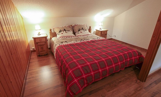Separate entrance, kitchen with center island / dining / living room, two bedrooms (one bed of 1.60 m + closets in each room), large and wide balcony, bathroom (walk-in shower), WC; Upstairs: 2 bedrooms (one bedroom with a bed of 1.60 m, the other with 4 beds 0.90 m), bathroom (bath bal-neo), separate toilet, common ski lockers, private of 10 people ,