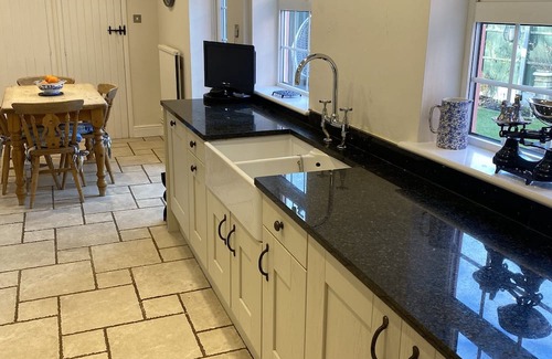 Beautiful village location. Cottage dating back to 1890. Three bedrooms, one with ensuite. Family bathroom. Large kitchen with aga. Downstairs toilet. Lounge with open fireplace. Office, dinning room and off street parking. Downstairs toilet. Small cottage garden. Period features. WiFi. Netflix