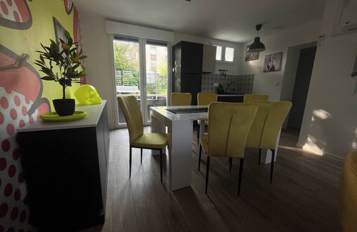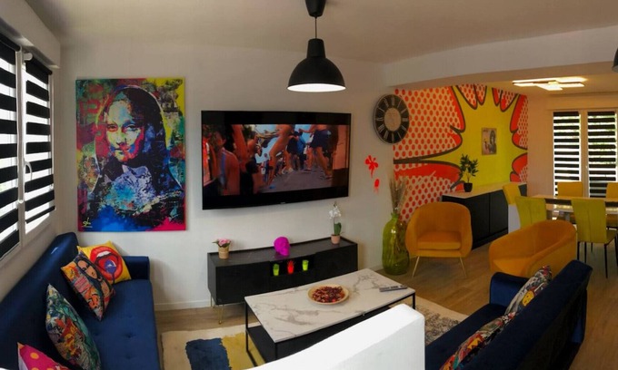 Dive into a vibrant and unique world with our rental home, decorated in a striking Pop Art style. Designed to accommodate up to 10 people, this space is ideal for groups of friends, large families or business travel teams. We have thought of your comfort by providing towels, toiletries, as well as tea and coffee to enhance your stay. Book now and get ready to experience an unforgettable artistic adventure.