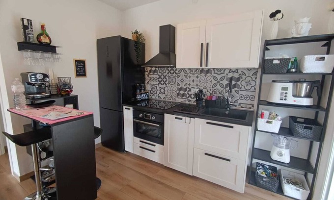 While you're here, you can enjoy all the comforts of home and more, including a pool and WiFi, as well as a bidet and air conditioning. Other amenities include laundry facilities, towels, an ironing board, and soap.