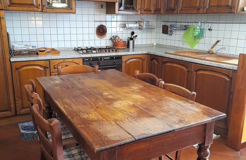 3-room house 80 m2: living/dining room with fireplace, wi-fi, colour TV and double bed. Kitchen with dining area (oven, freezer). 2 rooms with double bed. Bath/shower/WC. 2 terraces. Parking near the house. (Oil fired heating).