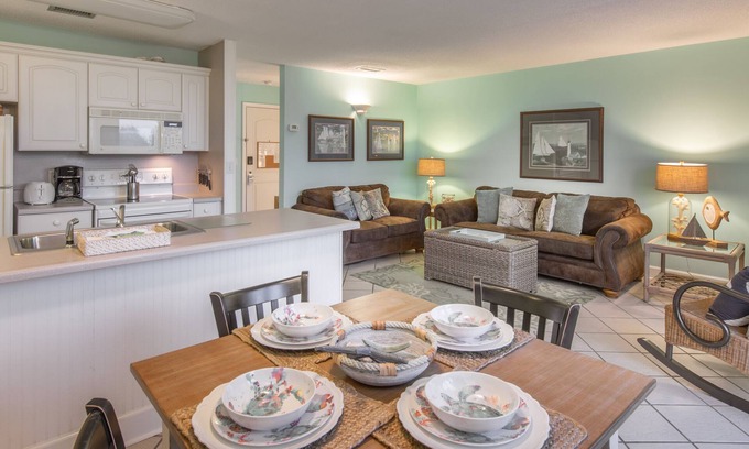 Your stay at Villas By the Sea comes with a host of amenities designed to elevate your wedding experience. Enjoy spacious villas equipped with full kitchens, cozy living areas, and complimentary Wi-Fi to ensure every comfort is at your fingertips. The resort features a seasonal outdoor pool for relaxation and leisure, alongside convenient laundry facilities and essential kitchenware to make your stay as seamless as possible. Whether you're hosting an intimate ceremony or a grand reception, the versatile event spaces can accommodate your vision perfectly.