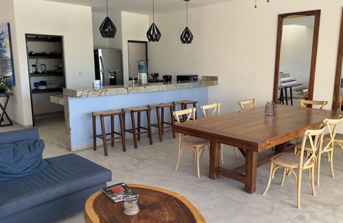 Family Beach House with gorgeous sands and exotic natives plants, birds and shallows waters of Gulf of Mexico. Just recently builted last year on the most exclusive beach Zone of Yucatan, with a lot space, on this private property.
