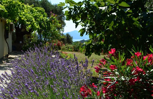 Villas Zoe Apartment is unique with complete privacy, like a small home. It has one bedroom with double bed, wardrobe and air-conditioning. Out of the bedroom there is a short hall with the bathroom (toilet-shower) and a kitchen fully equipped with fridge and oven, Dining area for 4 persons, Living room area with sofa-bed and a single bed if required, TV LCD 32". Ideal for a couple or a couple with a child, even a 2nd child under of 2 years old (coach available). It has a large terrace with beautiful garden overlooking fantastic panoramic sea views.