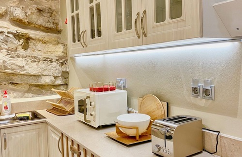 -Fully equipped kitchen: a fridge, a hob, an oven, a toaster, a kettle, a coffee maker, a dishwasher, a washing machine, a freezer and a microwave