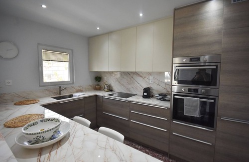 Modern decoration with a living room, a functional fully equipped kitchen to cover all your daily needs, 1 bedroom with a double bed and an en-suite bathroom, 2nd bedroom with a double bed, 3rd bedroom with a sofa bed that opens up to a double bed and a 2nd bathroom with a shower. The large terraces and the beautiful garden create the perfect atmosphere for a pleasant and comfortable stay relaxing day and night!