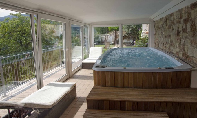 Independent and unique accommodation. The property is located in Brentonico immersed in the green of the Baldo mountains, in 15 minutes you reach Lake Garda and in 10 minutes you reach the Altipiano mountains. The house has 3 bedrooms and 2 bathrooms with a large living area. A heated indoor pool is available all year round. There is a gym with Tecnogym's Kinesis. The garden offers a magnificent view of the mountains.