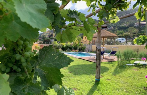 The highlight of this accommodation is the private outdoor area, which includes a pool, a spacious garden, an open terrace, a covered terrace, and an outdoor shower: the ideal place to relax all year round.